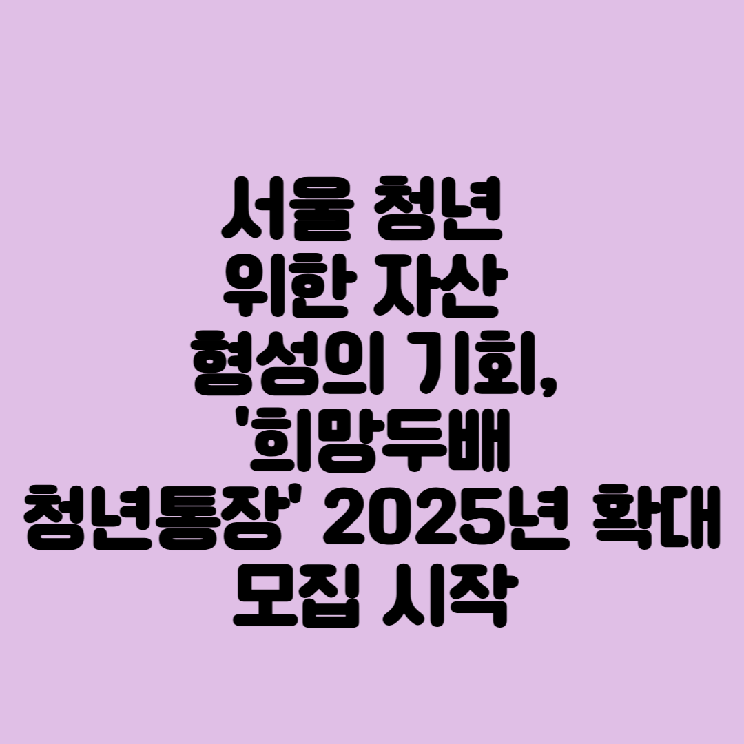 '희망두배 청년통장'은 단순한 저축 상품이 아닙니다. 청년이 자립하고 계획적인 미래를 설계할 수 있는 제도적 기반입니다. 2025년 확대 모집은 그 기회를 더욱 많은 이들에게 열어주는 신호탄이며, 서울시가 청년의 금융 역량 강화를 정책적 우선순위로 두고 있음을 보여줍니다.