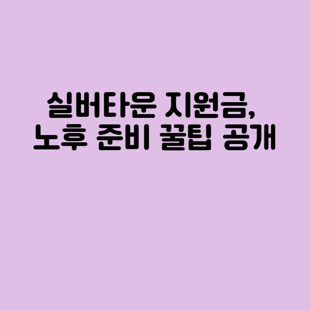 | 실버타운 지원금 | 노후 생활비 부담을 덜어주는 정부 지원 혜택 |