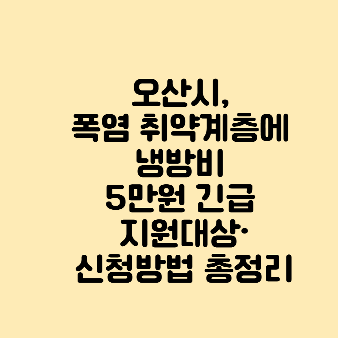 지원 대상은 기초생활수급자와 차상위계층으로, 2025년 7월 17일 기준 오산시에 주민등록이 되어 있는 총 5,950가구입니다. 각 가구당 1회에 한해 5만 원의 냉방비가 지원됩니다.