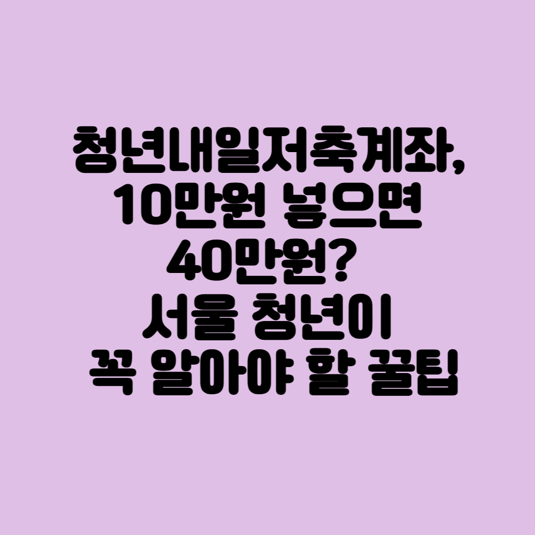 청년내일저축계좌, 10만원 넣으면 40만원? 서울 청년이 꼭 알아야 할 꿀팁