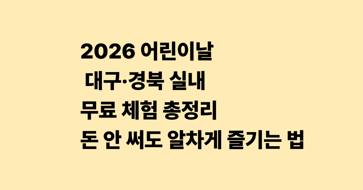 2026 어린이날 대구·경북 실내 무료 체험 총정리 — 돈 안 써도 알차게 즐기는 법