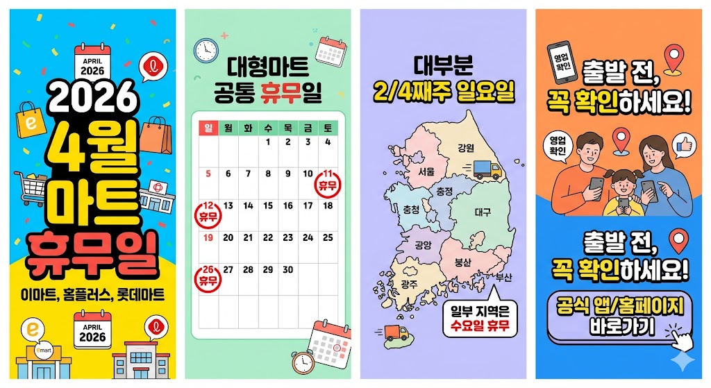 ✔ 대형마트 휴무일 달력 – 이마트·롯데·홈플러스·코스트코